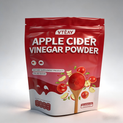 กระเป๋าทำจากวัสดุ PET/อะลูมิเนียม/PE เกรดอาหาร ช่วยให้มั่นใจได้ว่าผงน้ำส้มสายชูหมักจากแอปเปิ้ลยังคงความสดและมีประสิทธิภาพเป็นเวลานาน วัสดุมีคุณสมบัติกั้นออกซิเจน ต้านทานความชื้น และกันแสงได้ดีเยี่ยม ช่วยปกป้องส่วนผสมออกฤทธิ์ โดยรักษาคุณภาพของผลิตภัณฑ์